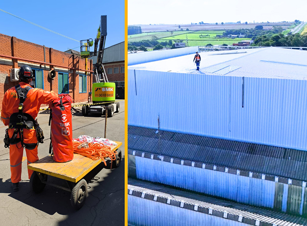 Executamos serviços de alpinismo industrial e trabalhos em altura com suporte técnico especializado, incluindo plantão de resgate, gestão de segurança do trabalho, treinamentos presenciais e online, instalação de linhas de vida definitivas e soluções técnicas para manutenção e proteção de estruturas industriais.